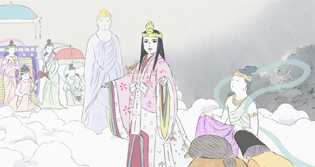 Basada en un cuento popular japonés anónimo del siglo IX, "El cortador de bambú". La historia comienza cuando una pareja de ancianos campesinos encuentra a una niña diminuta dentro de una planta de bambú, y deciden adoptarla como si fuera su hija. Pasan los años, y rápidamente se convierte en una hermosa mujer pretendida por muchos hombres poderosos.